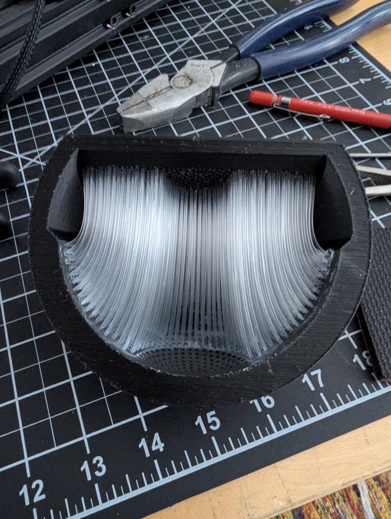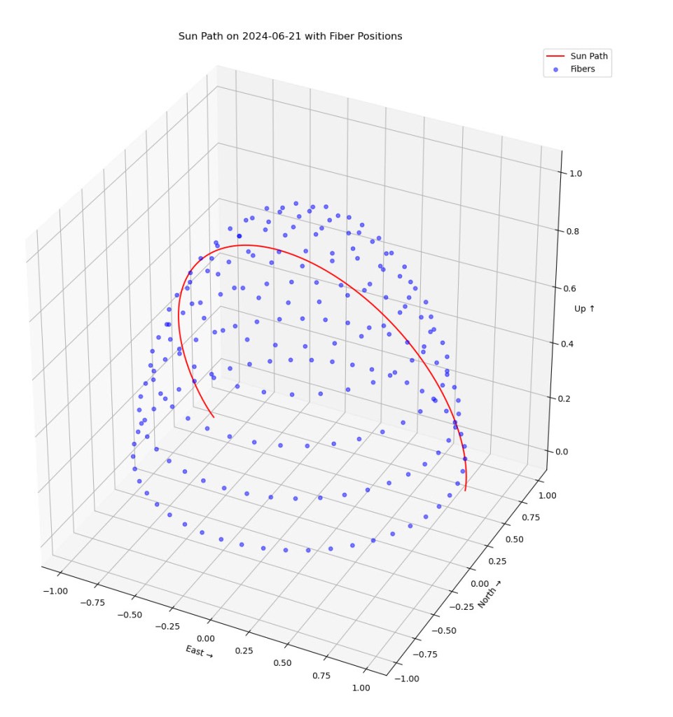 The idea is simple, point a bunch of fiber optics toward the sky and use the output of these fibers to tell the time. In practice, this is challenging. The number of fibers, their placement and geometry, the acceptance angle of the fibers, the installation process, and finally generating useful information out the other side is an intense bit of work that, as usual, required multiple iterations before a functioning prototype was generated.