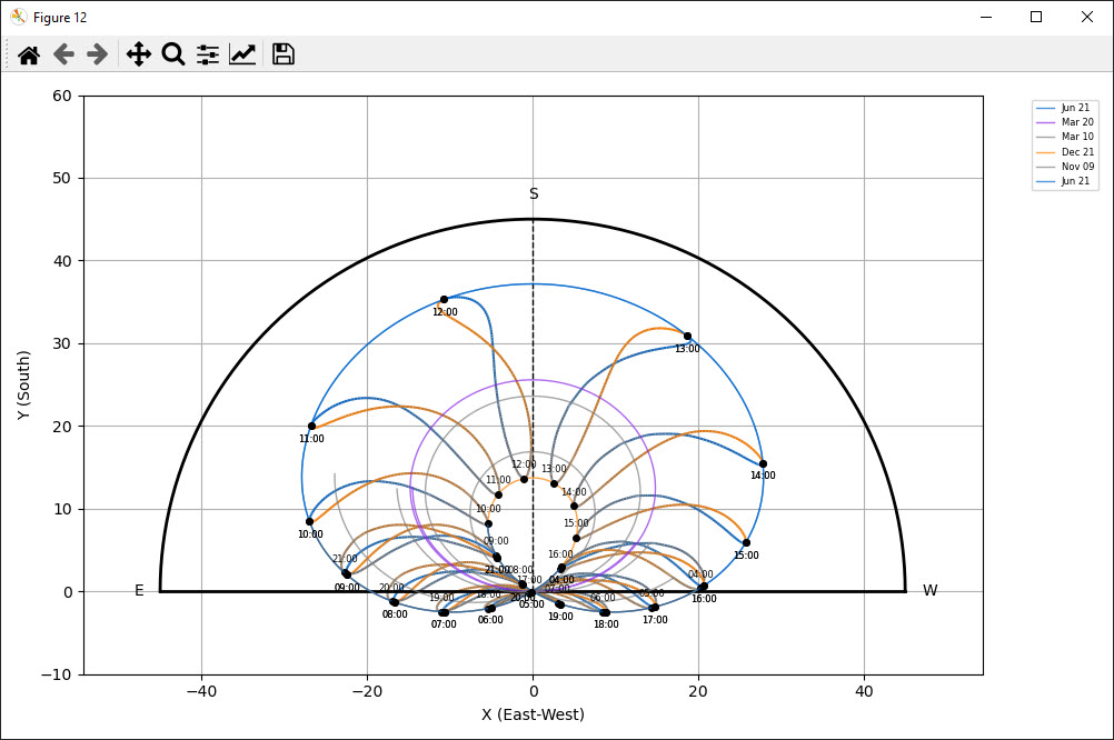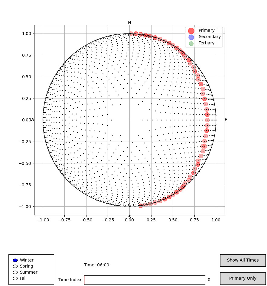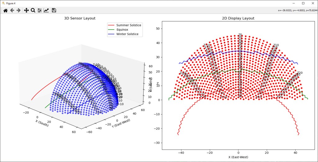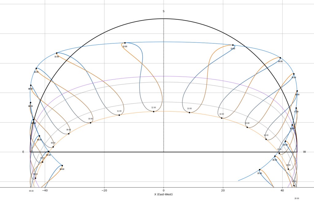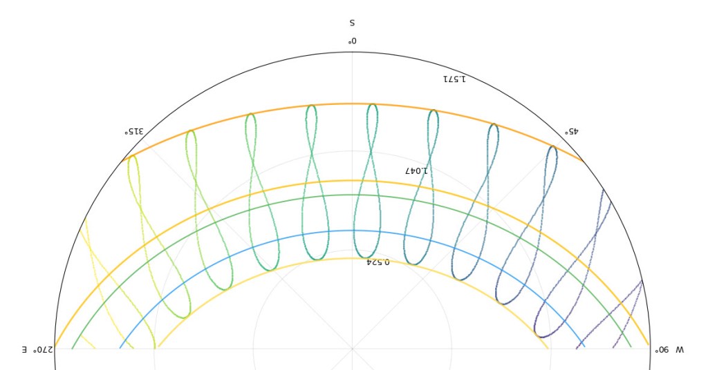There’s a unique position of the sun for every time of day on every day of the year. Sundials operate on this principle by projecting a shadow onto a plane (typically) which then has markings to indicate the time. The sundial I devised here skips the shadow step and instead projects the sunlight itself.
